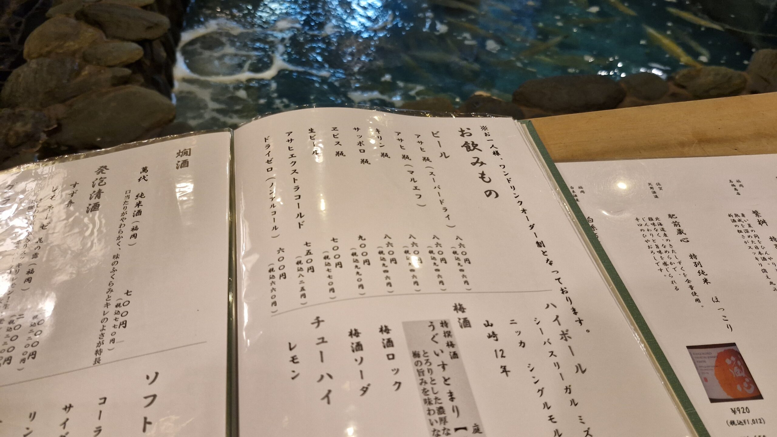 座席に通されると、目の前には生簀!