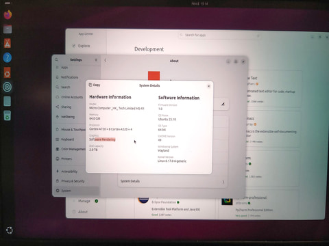 では、ほかのOSはどうか。まずはUbuntu 25.10のArm版だが、問題なくインストールや起動はするし、カーネルが6.17であるためRTL8127も使えるが、Immortalis-G720やオーディオのドライバがない状態だった。