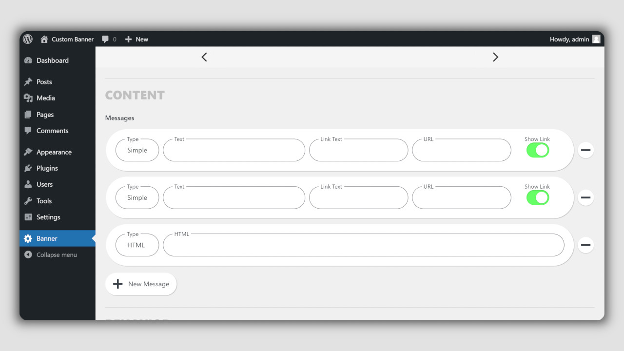 • User-Friendly for Everyone: You don’t need to be a developer to make the most of Custom Banner. Our plugin is built for ease of use, with a straightforward settings panel that makes it easy to customize options without overwhelming you with technical jargon.