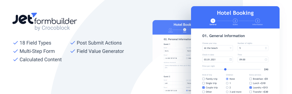 JetFormBuilder PRO version allows you to go far beyond the ordinary forms. Its pack of mighty addons gives a second-to-none form-building experience.