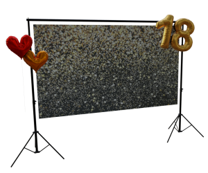 Unser Hintergrundsystem besteht aus zwei Stativen, mehreren Stangen und Klammern, mit denen der Hintergrund befestigt wird. Es lässt sich in nur fünf Minuten aufbauen.
