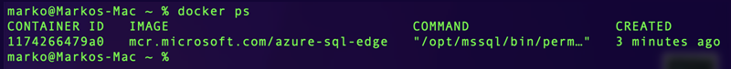 sudo docker run --cap-add SYS_PTRACE -e 'ACCEPT_EULA=Y' -e 'MSSQL_SA_PASSWORD=Strong.Pwd-123' -p 1433:1433 --name sqledge -d mcr.microsoft.com/azure-sql-edge