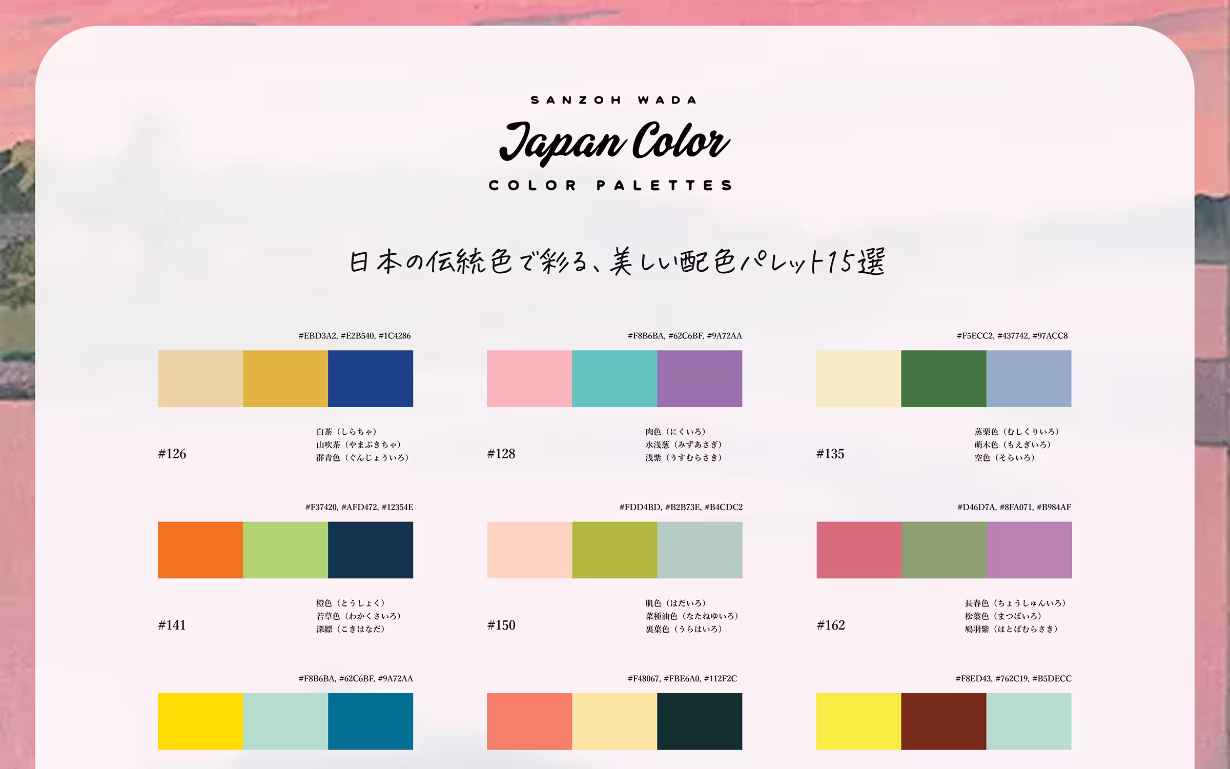 配色をそのままコピー&ペーストできるHEX値も一緒にまとめています、ウェブサイトやグラフィックデザインの制作で配色に迷ったときに活用してみてはいかがでしょう。