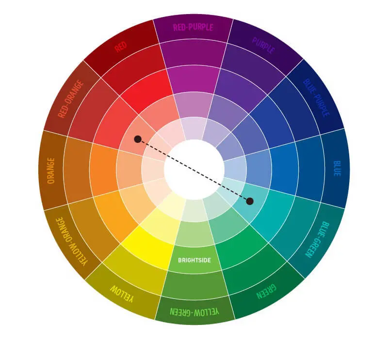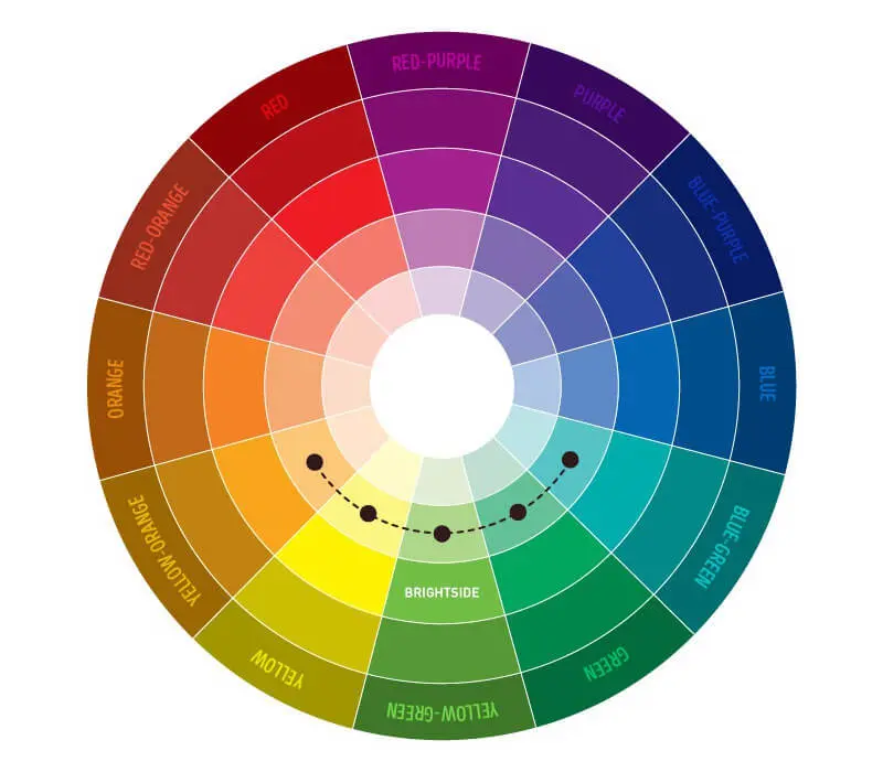 配色のために色を選ぶとき、カラーホイールは、元の色に白、黒、グレーを混ぜることによって、より明るい色、より明るい色、より柔らかい色、より暗い色を作り出すことができます。