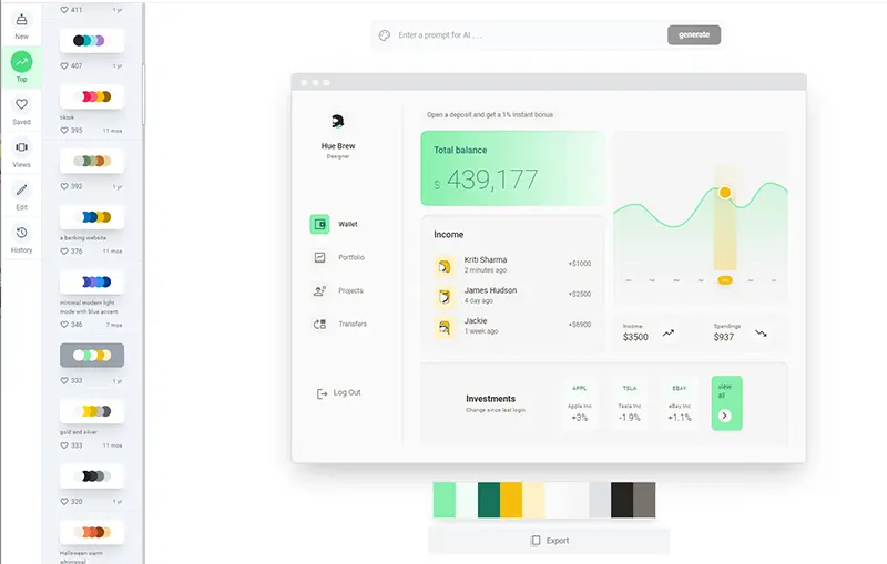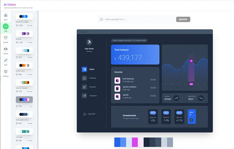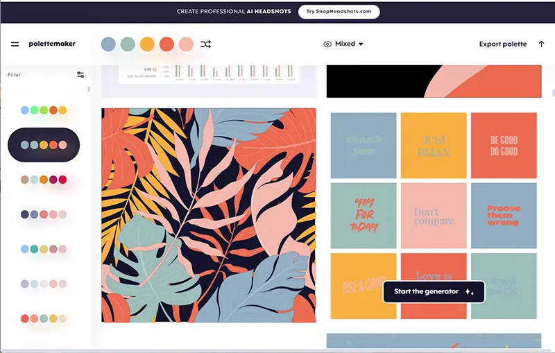 AIで魅力的な配色を一発作成するAI Color Palette Generator