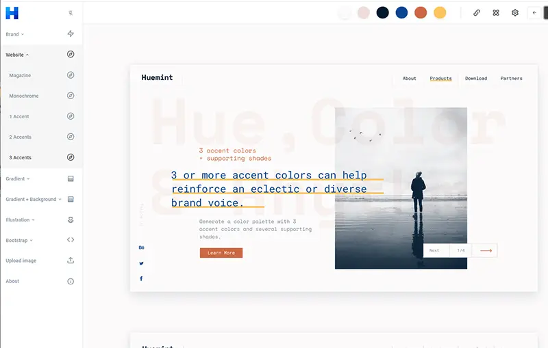配色の確認サンプルが豊富なHuemint
