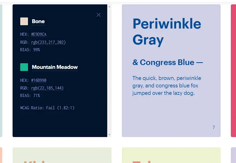 各カードをクリックするとHEXカラーコードなど色の詳細をコピペできます。