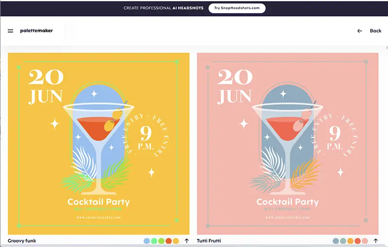 実際のデザイン例で配色を試すPalettemaker