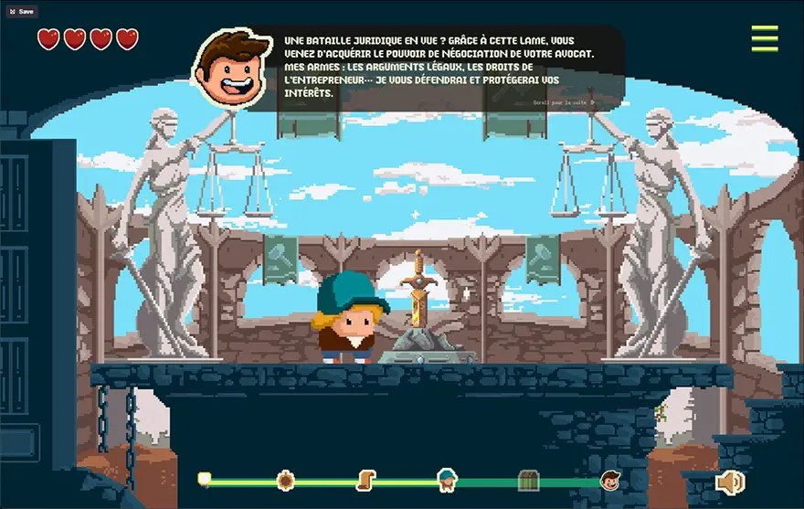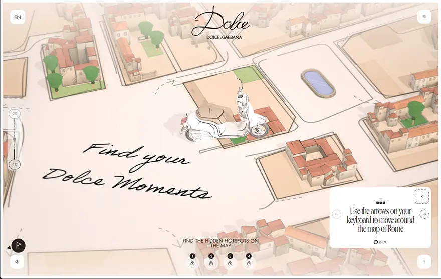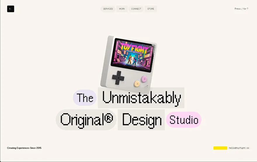 コンテンツをゲーム風インターフェースに並べたポートフォリオサイトは、マウススクロールでキャラクターが左右に歩くことができ、各ステージごとに分けられたコンテンツへと移動。体験できる楽しさは一度見たら忘れないサイトへとつながります。