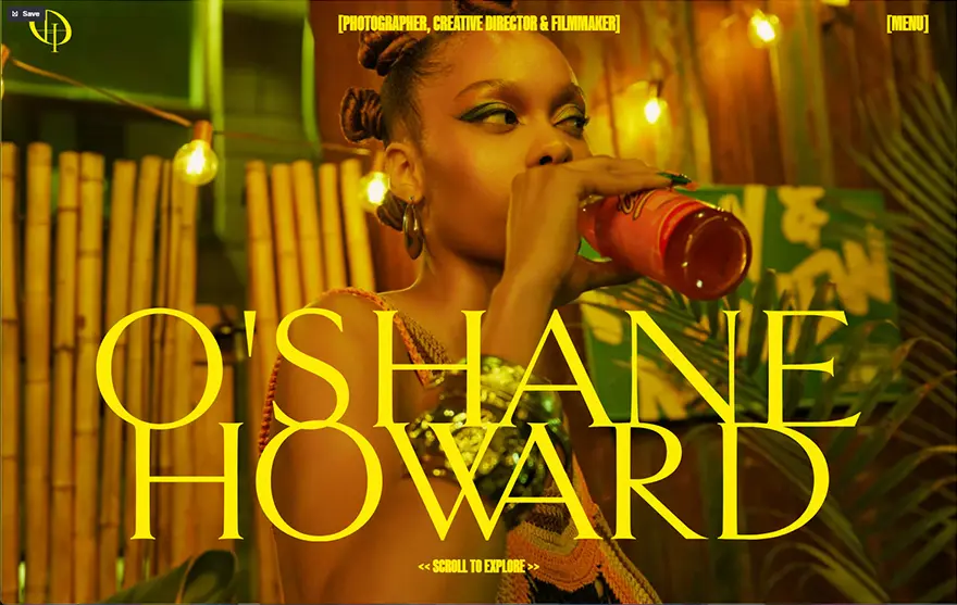 ページ全体に広がる写真をスクロールで選択してからのページ遷移、水平スクロールによるポートフォリオ画像の見せ方、メインカラーの鮮やかな黄色などクリエイティブな要素がつまっています。