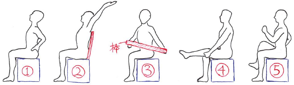 また、人によっては「目標物(例えば座るための椅子)に近づくほどに小刻みで足の踏み返しも難しくなってしまう人がいるので「直前まで目的物を意識しない(例えばもう少し遠方に仮の目標物を設定しておくなど)」とうのも一つの考えとなる。