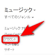 表示される項目の中から「アカウント」を選択します。(Tunesue上部に「アカウント」が表示されている場合「アカウント」→「マイアカウントを表示」からでも同じ画面にたどり着けます。)