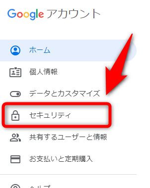 次にログイン後に左側に表示されるメニューからセキュリティを選択します。