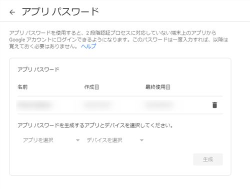 Googleアカウント2段階認証設定後のアプリ固有のパスワード設定方法