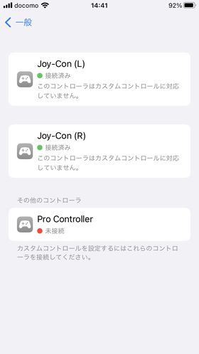 iPhoneと対象のコントローラーがペアリングされ、コントローラーが接続済みの状態になります。