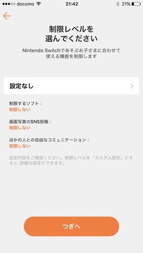 Nintendo Switchにかける細かい制限を設定します。特に他に制限をかけたくなければ、そのまま「つぎへ」を押します。