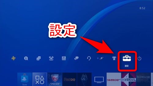 PS4のホーム画面で表示されるゲーム(コンテンツ)の数を増やすには、ホーム画面から「設定」を開きます。