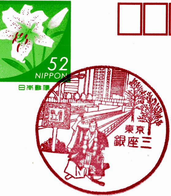 東京銀座七郵便局から、東京銀座三郵便局へ向かい移動中。