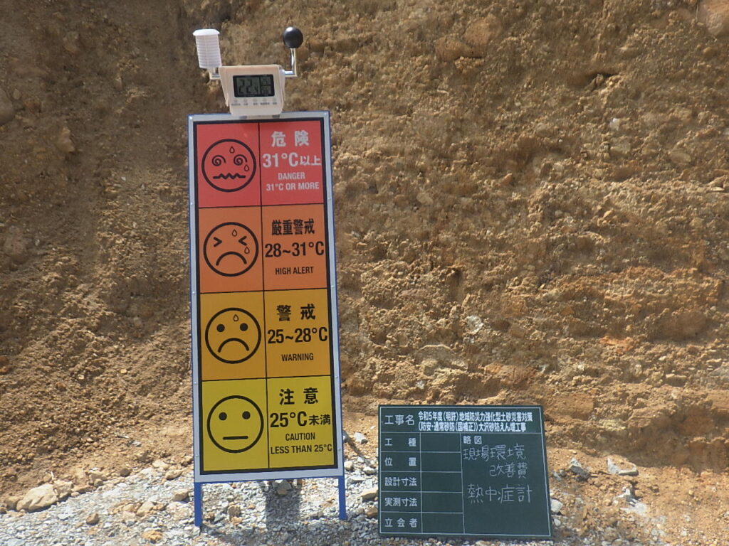 - 当現場では、安全掲示板横にWBGT測定器を設置しています。(場所を具体的に記入)