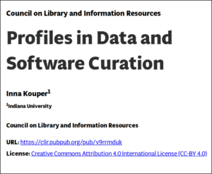 Profiles in Data and Software Curation (CLIR pub 190, 2023), by former fellow Inna Kouper, highlights the careers and achievements of former CLIR data and software curation fellows. Kouper interviewed eleven former data and software curation fellows who received fellowships between the years 2015 and 2018, talking to each about their fellowship experiences, their careers, and the challenges of data and software curation.