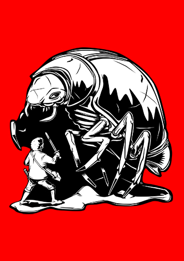 4. Spot illustration – Skull covered in tailless scorpions – Small square $20