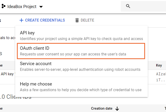 3. Save the settings after reviewing them and you'll be redirected to the Credentials screen.