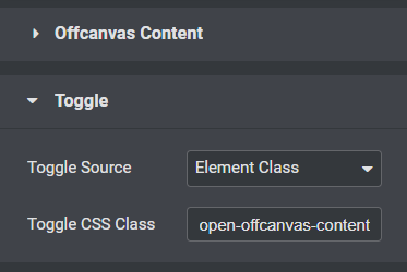 a. Add Off-Canvas Content Widget to the editor and select Toggle > Toggle Source > Element Class