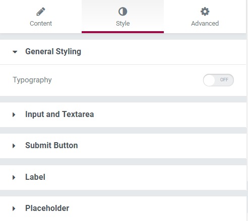 The style tab helps you make typography changes and multiple other corrections, such as changing the background color, text color, padding, and width of text inputs. You can also change the alignment, padding, background, and border color of the button.