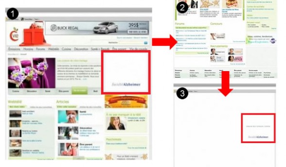 カナダの大手ポータルサイトにバナー広告を出稿しますがこのサイトをユーザーが、色んな情報を得ようと下部にスクロールしていき、、、、、「やっぱりもう一度上のコンテンツを見よう」と思って、ユーザーが上部にスクロールしていくと、何と右サイドにあったバナー広告以外全てのコンテンツがまっさらになっているという仕掛けが施されています。