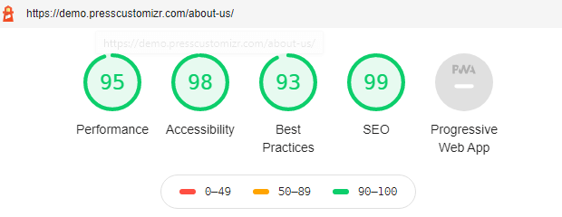 Customizr passes tests for performance, accessibility and SEO with an A rating. The HTML and CSS are validated with the latest web standard from W3C.