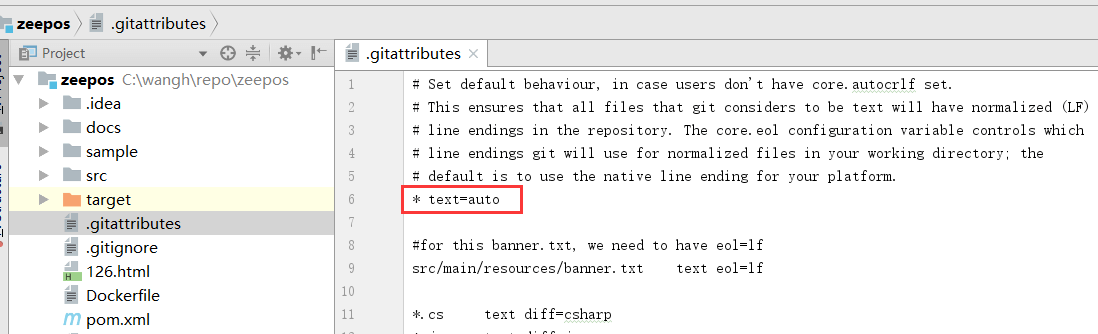 (2)或者不合并,直接到 master 下添加 “src/test/resources/dptech-fw/general/config/* text eol=lf”