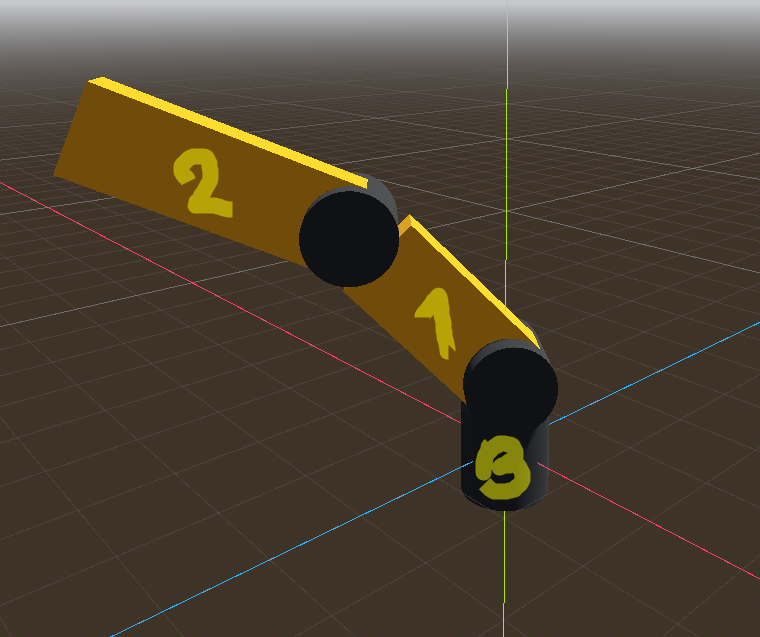 I’ve started out modeling a three-joint articulated robot arm that i can control through signals to the individual joints, like controlling a stepper motor.