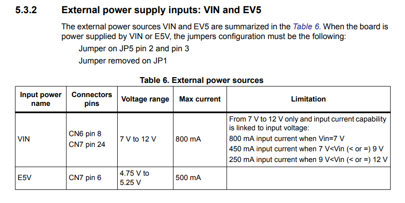 ・外部電源4.75~5.25V(E5V) :CN7 pin6 (出力可能電流500mA)