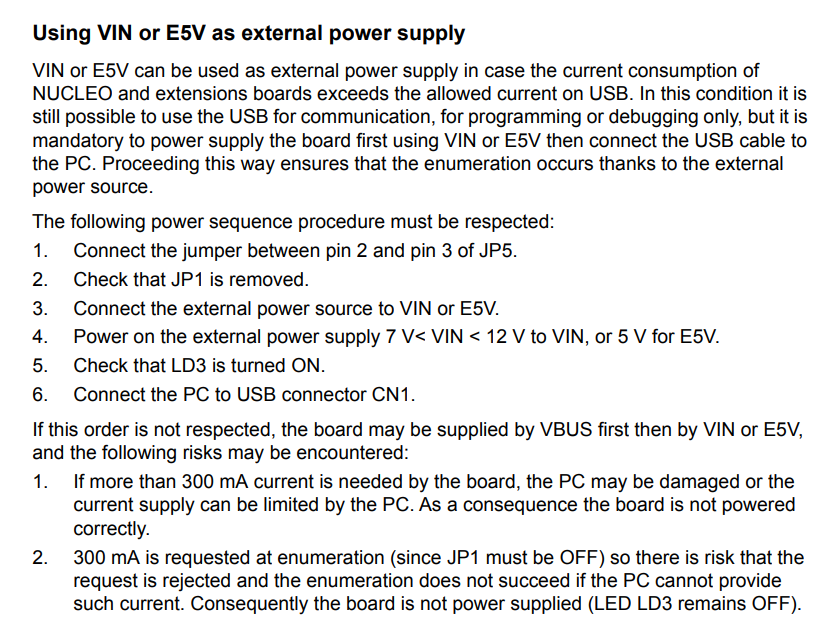 外部電源でmbed(nucleof401RE)を使用する方法と、その際の注意点を記載する。