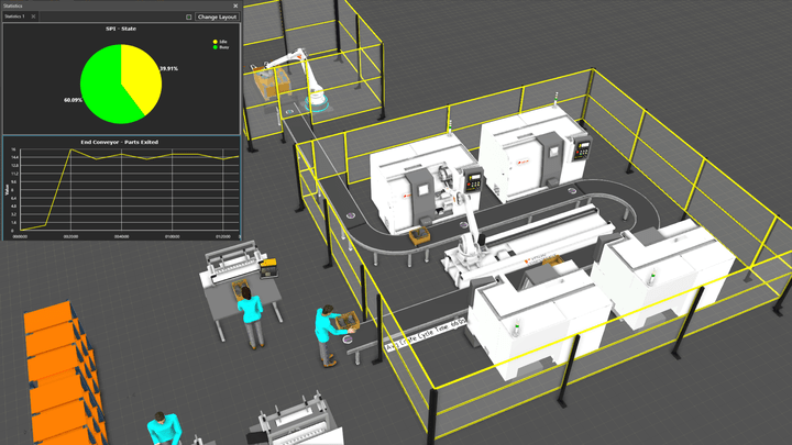 Bei der virtuellen Inbetriebnahme übernehmen externe Systeme Abläufe in der Simulation. Durch frühzeitiges Eliminieren von Schwachstellen werden unnötige Kosten vermieden und eine reibungslose Inbetriebnahme sichergestellt.