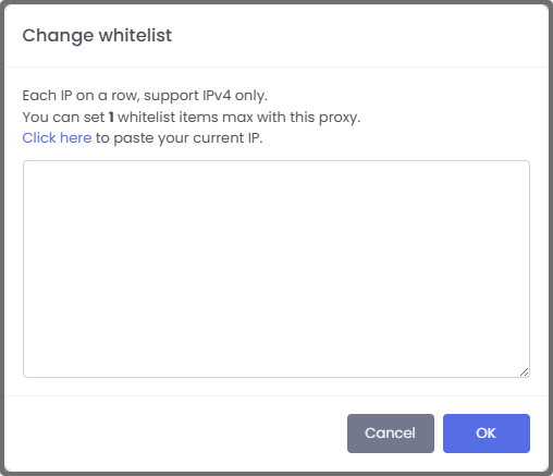 Whitelist allows you to specify which IP addresses are permitted to access your proxy. By adding your device’s IP to the whitelist, you ensure only authorized connections can use the proxy, enhancing security and preventing unauthorized usage.