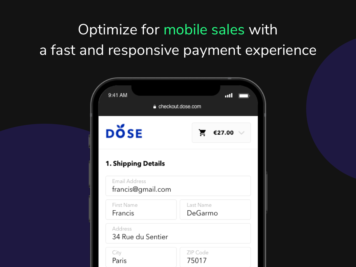 - Less input fields for customers. Eliminate all friction and distractions to reduce any chances customers can drop off due to a long and overwhelming checkout process.
