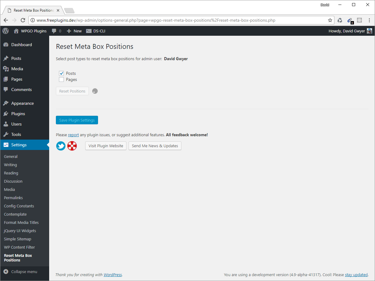 - Visit the Plugin options page via Settings -> Reset Meta Box Positions, and reset meta boxes for the selected post types.