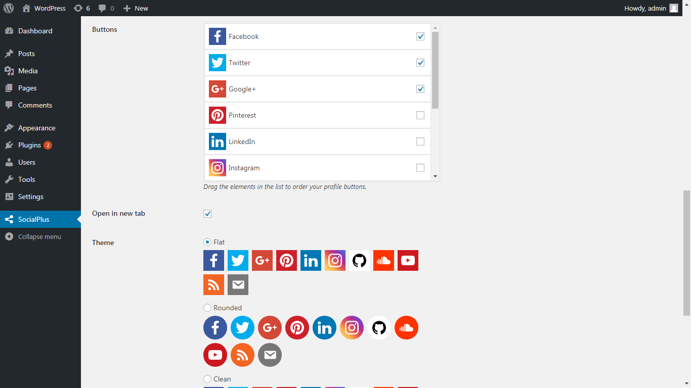 • Up to 4 themes to customize the look of social and profile buttons (more will be added in future versions)