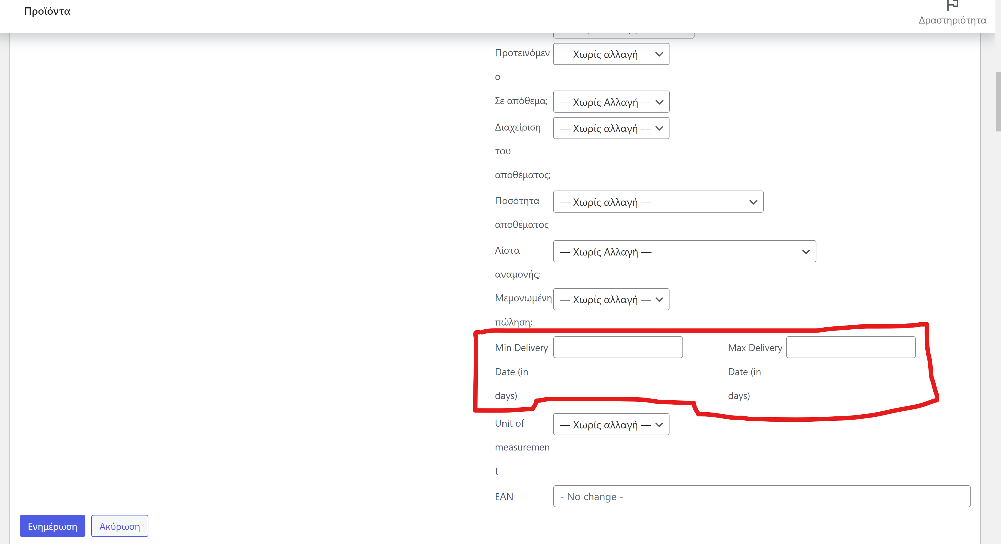 - Assign delivery dates to woocommerce products from the product bulk edit options