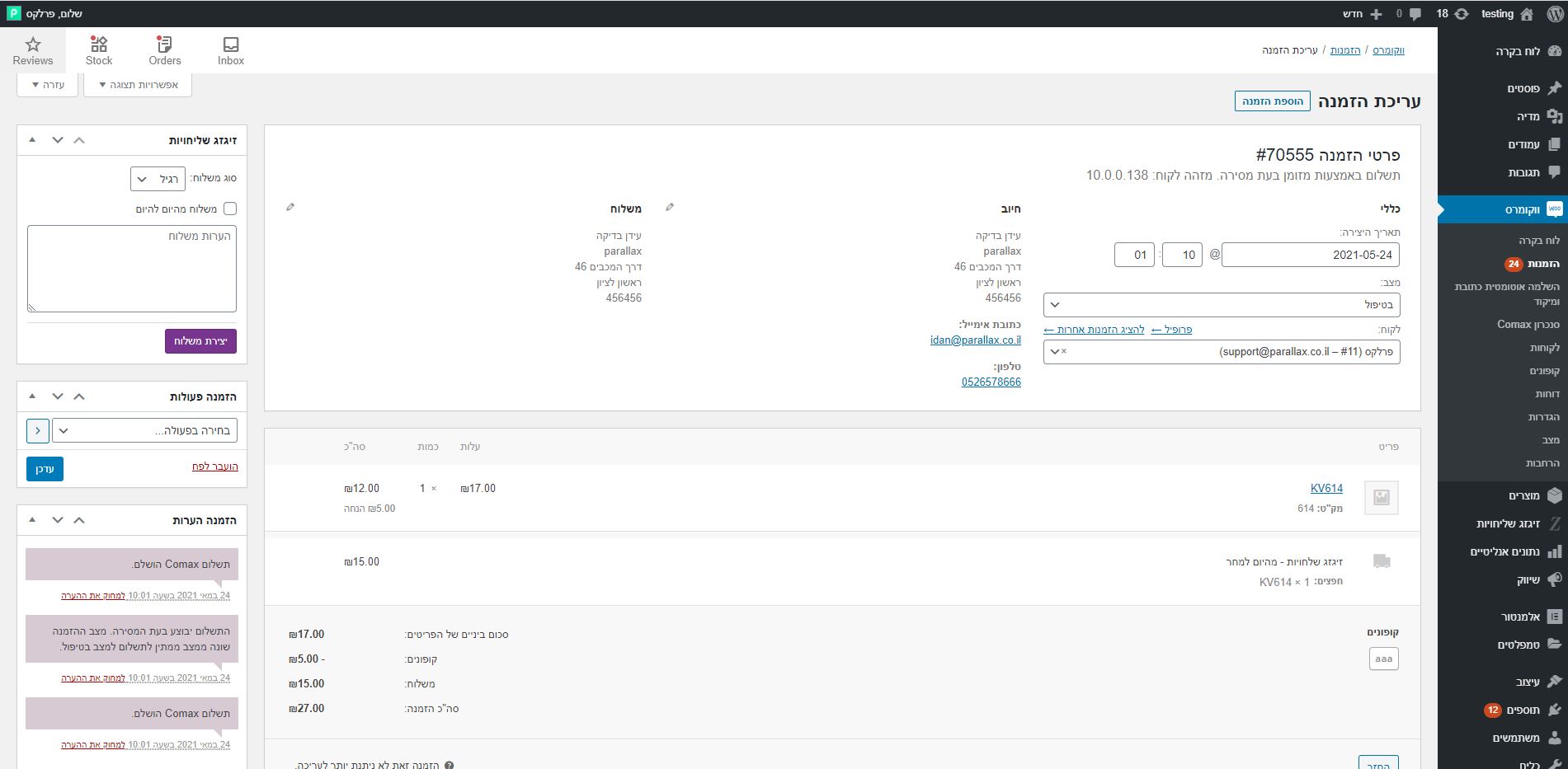 - Added product quantity to order shipping.