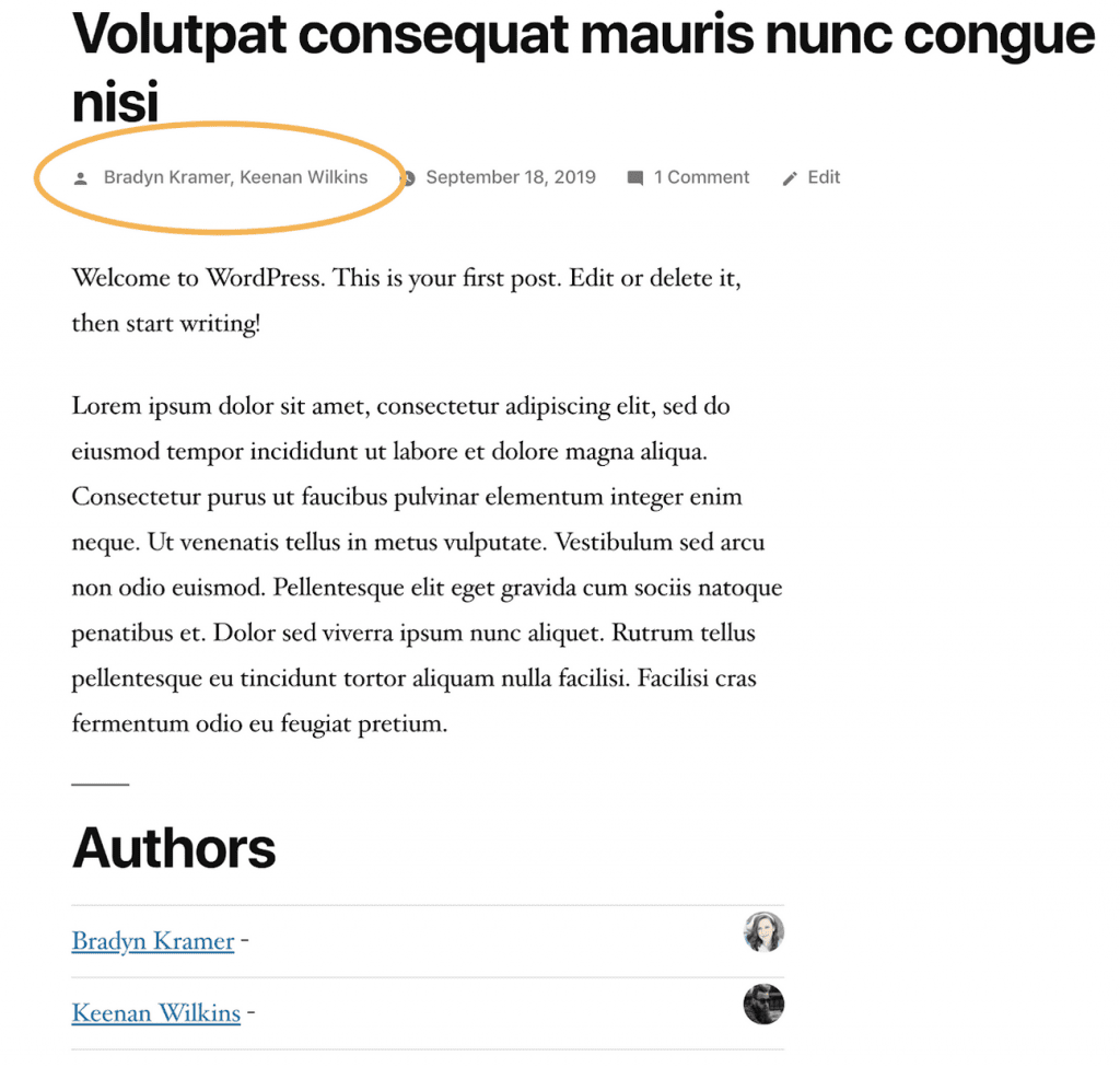 This is the technical explanation for why we need to replace the default code. For this reason, when you first install PublishPress Authors, the default WordPress byline will continue to show one author.