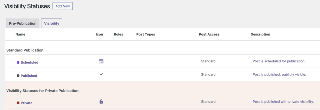 With the PublishPress Permissions Pro plugin enabled, you can create new Visibility Statuses.