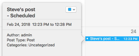 - PublishPress will now automatically export your content schedule to this new calendar. Each item on the calendar will contain details about the content, including the author name and a link to the calendar.