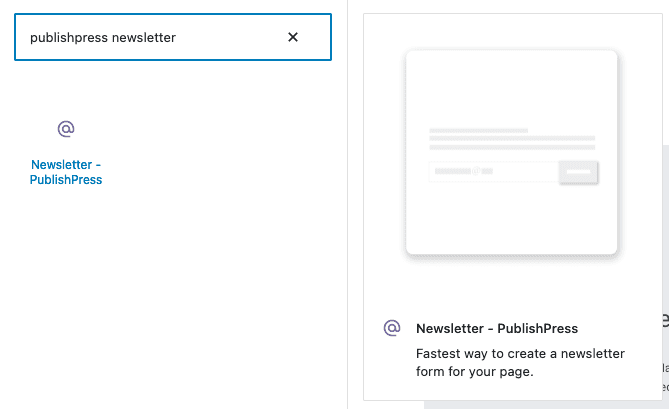 You can create the email block by clicking on “Newsletter – PublishPress” button in the PublishPress Blocks category.