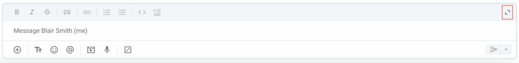 Wenn du eine längere Nachricht eingibst, kannst du das Nachrichtenfenster durch Klicken auf das Erweitern-Symbol in der oberen rechten Ecke oder mithilfe der Tastenkombination Strg/Cmd + Umschalt + E vergrößern.