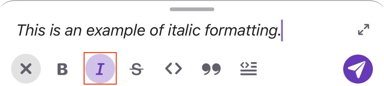 Um deine Nachricht in der mobilen App zu formatieren, kannst du auch Markup verwenden und den Text mit Zeichnen einrahmen, die mit dem Format verbunden sind.
