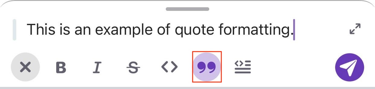 Um den Zitatblock zu verwenden, solltest du auf die Formatierungsschaltfläche unten links tippen und den Zitatblock von den aufgelisteten Optionen wählen.