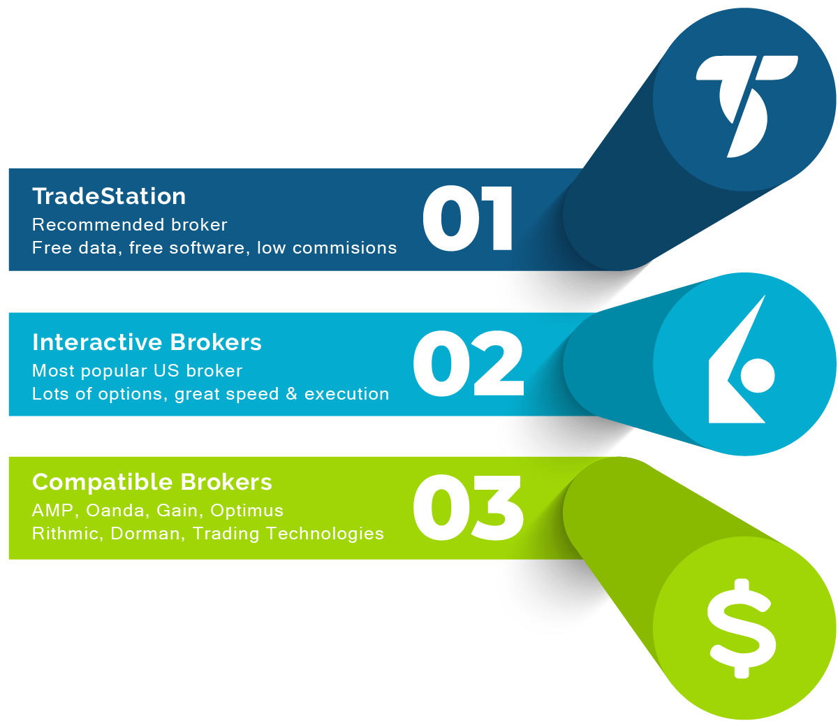Partnered with Interactive Brokers, Tradestation, Multicharts and many other brokers