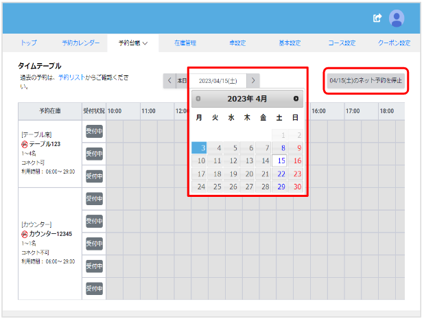 ネット予約を止めるのも「日付を選んで止める」だけの簡単操作。
